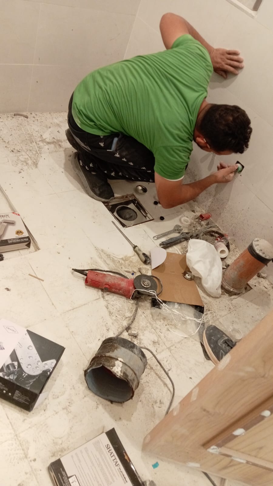 نتأكد من استواء الجدران والأرضيات وتثبيت البلاط بشكل متقن، مما يمنح المكان مظهرًا فخمًا ومتقنًا يعكس الجودة والاحترافية
